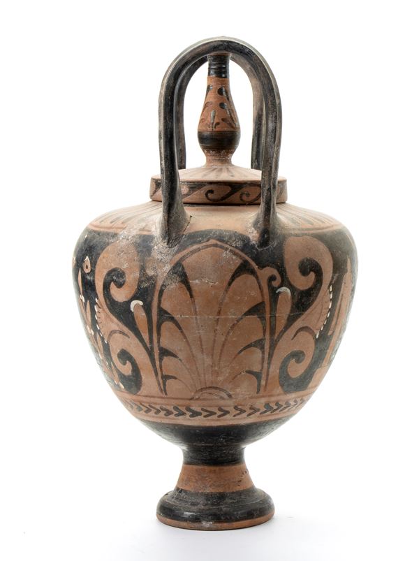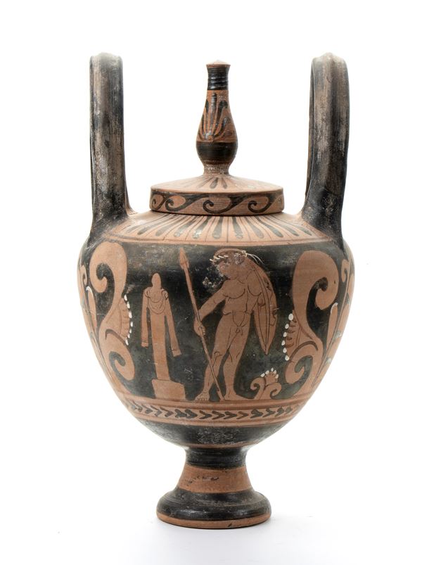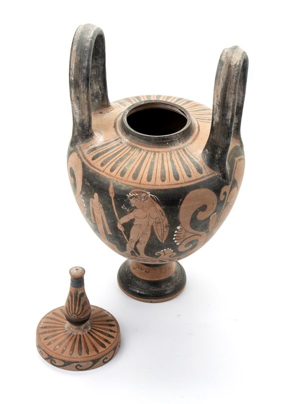 Lebete nuziale in ceramica classica a figure rosse con coperchio