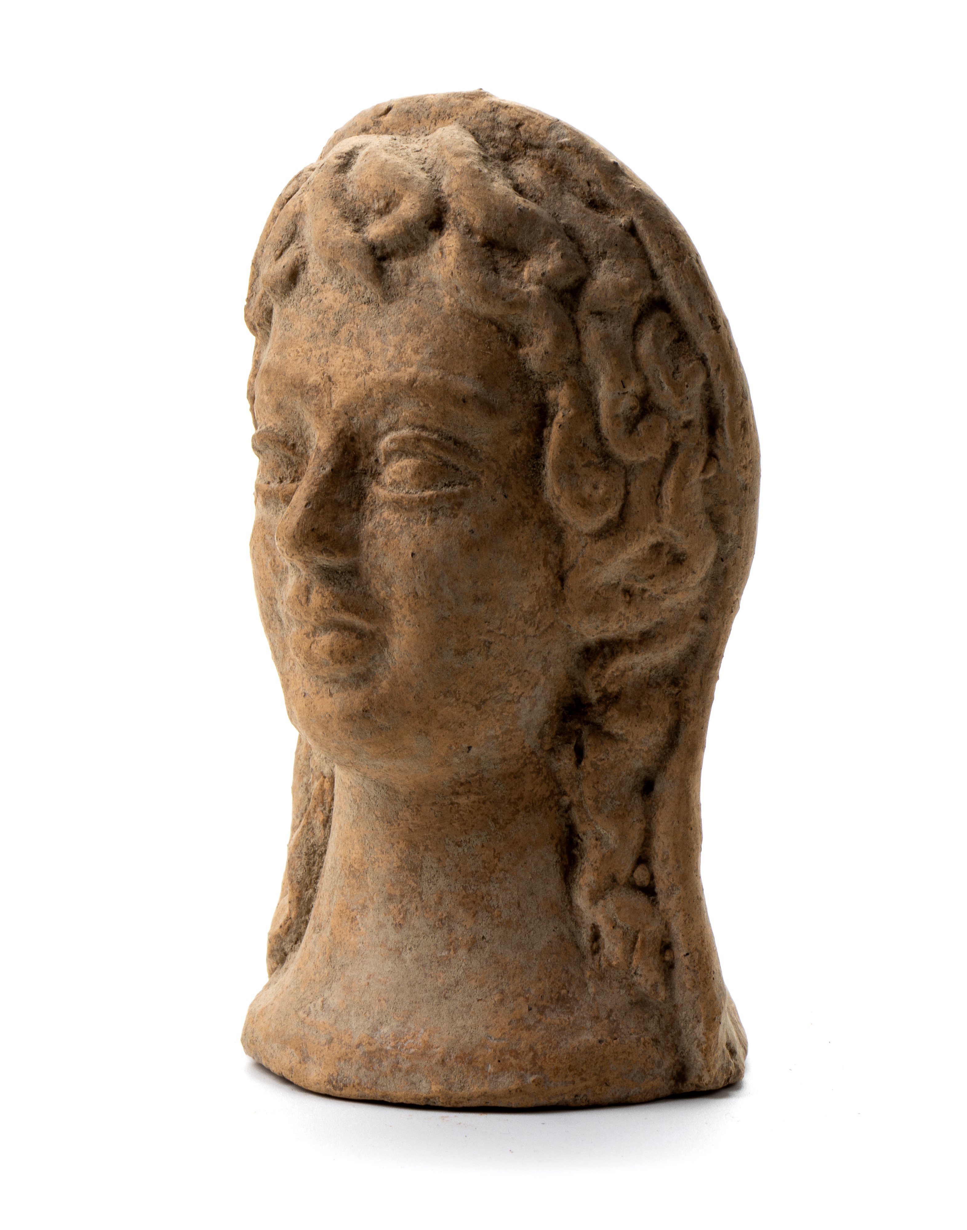 Piccola antefissa in terracotta raffigurante figura muliebre