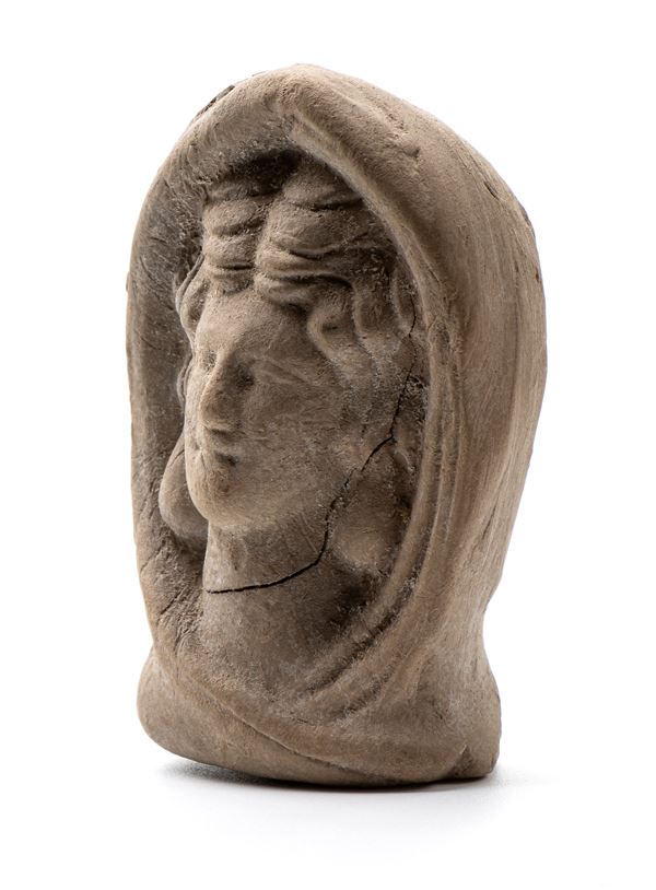 Piccola antefissa in terracotta rappresentante testa muliebre
