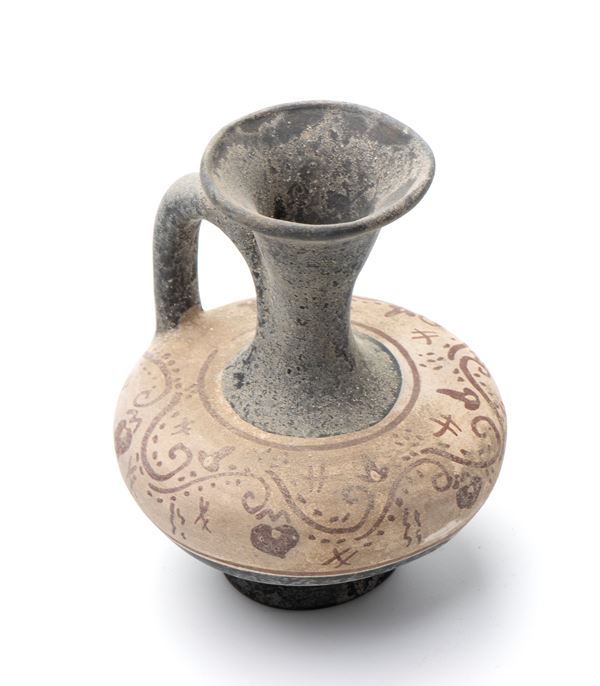Piccolo oinochoe in ceramica arcaica con decoro a tralcio di vite stilizzato