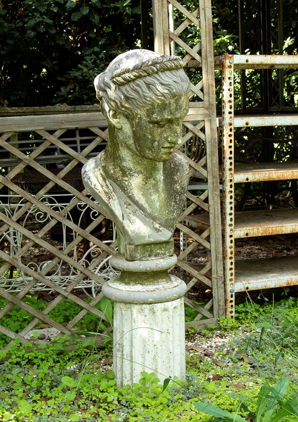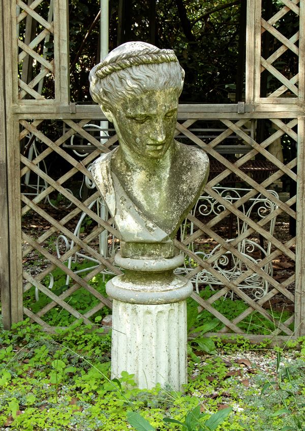 Coppia di busti in cemento e polvere di marmo raffigurante fanciulla e giovane
