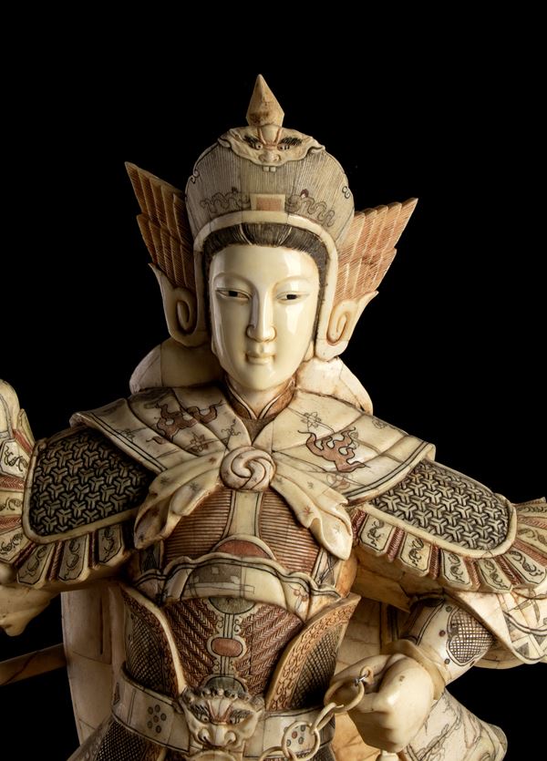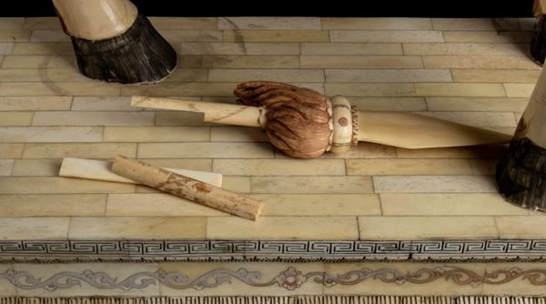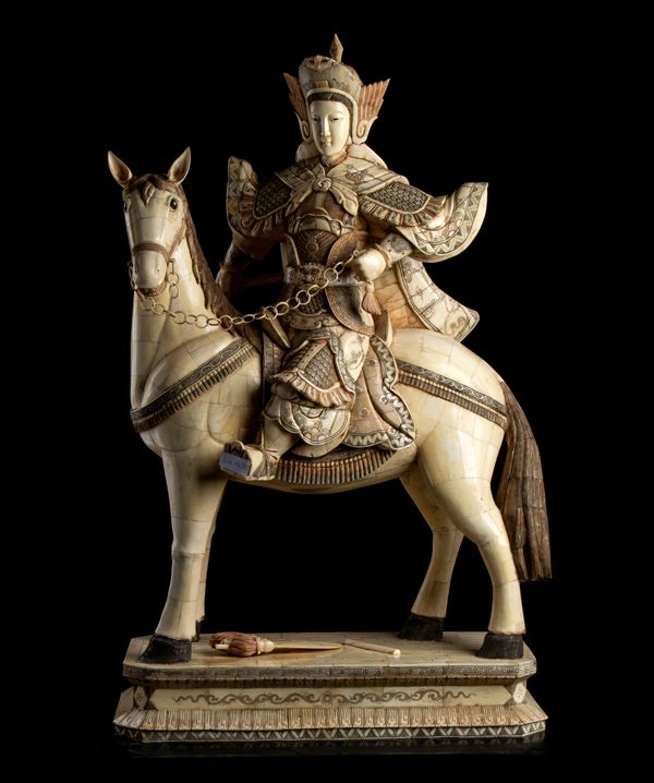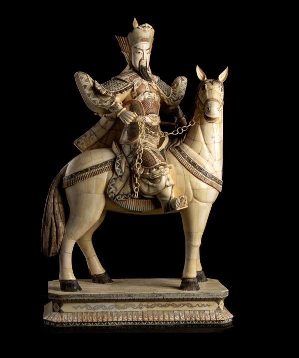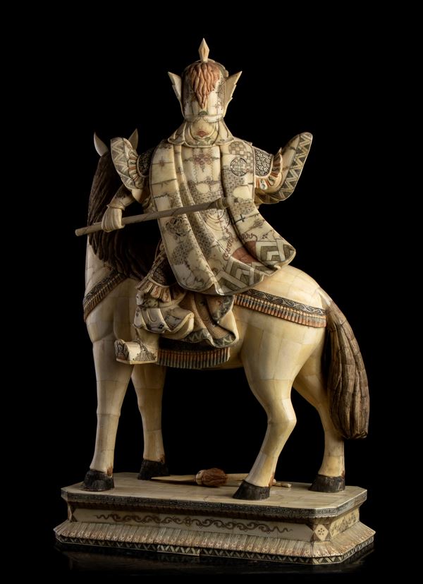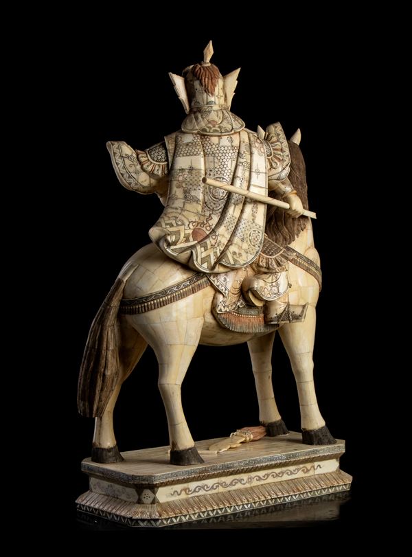 Coppia di imperatore e imperatrice a cavallo rivestiti in tasselli di avoeio e dipinti