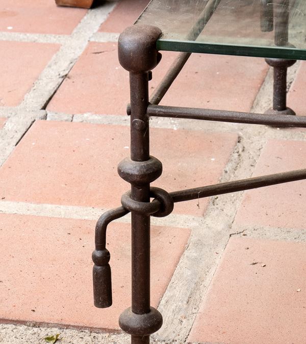 Tavolino da sala con struttura in bronzo e e piano in vetro