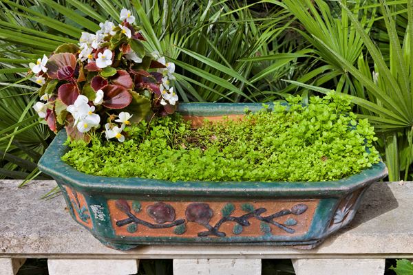 Vaso esagonale in terracotta smaltata nei torni dell'arancio e del verde con rami di ciliegio a rilievo. Giappone, XX secolo