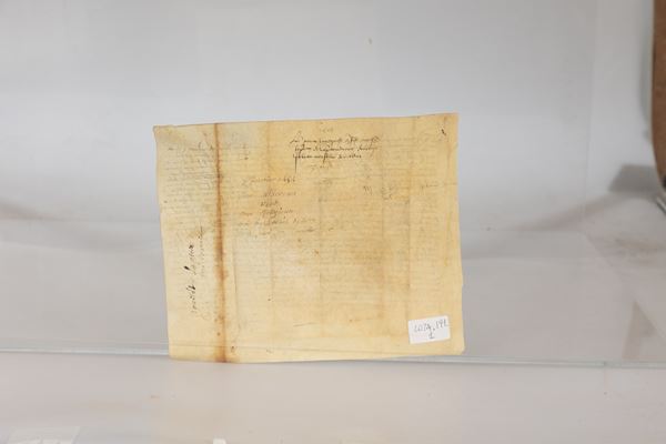 Manoscritto su pergamena, formato 26 x 22 cm., testo in lingua francese, in buone condizioni.