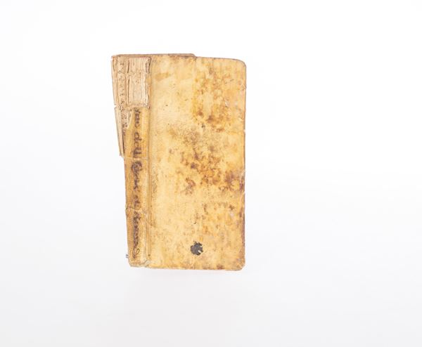 Descrizione: volume formato 12°, rilegato in pergamena coeva, titolo calligrafato al dorso, pp. [12], 273, esemplare in buone condizioni, dorso con mancanze.