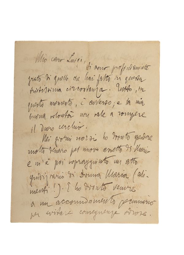 Nei giorni scorsi ho dovuto spendere molto denaro pel nuovo assetto di Mario e m'è poi sopraggiunto un atto giudiziario di Donna Maria (alimenti!) E ho dovuto venire ad un accomodamento pecuniario per evitare conseguenze odiose.