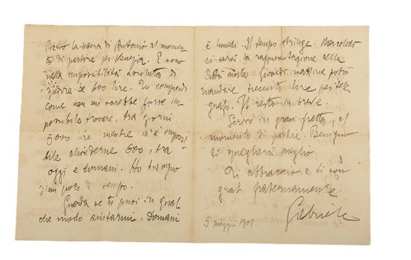 Ti abbraccio. Il tuo Gabriele d'Annunzio.