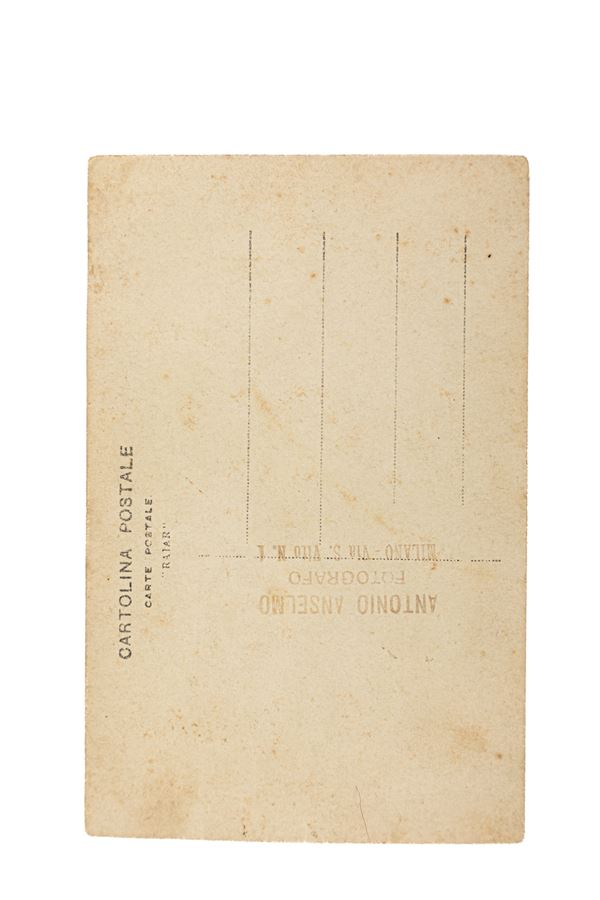 Cartolina postale da dieci centesimi non viaggiata con timbro "Antonio Anselmo Fotografo, Milano, Via San Vito N.1"