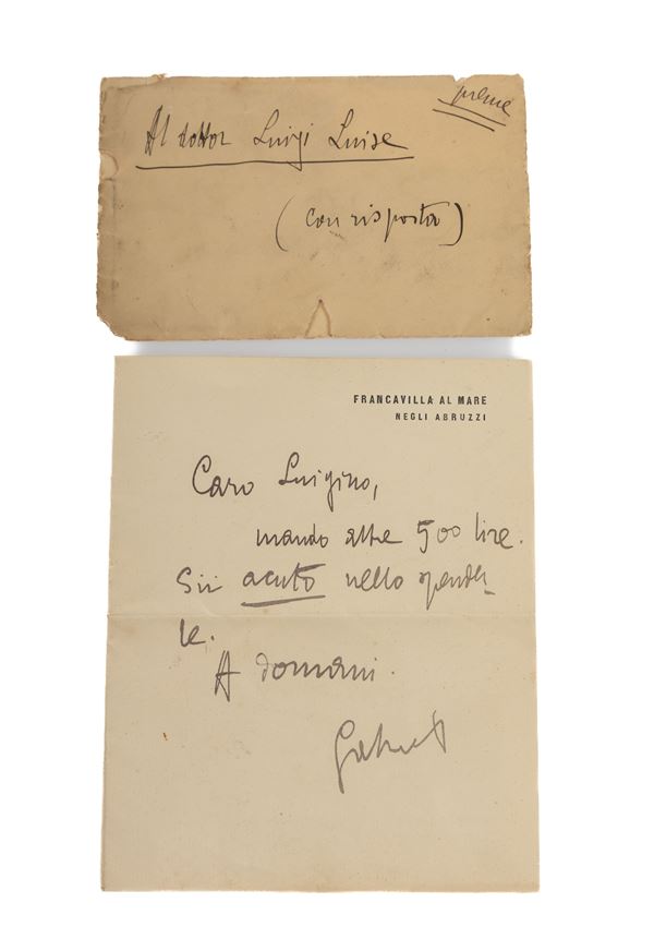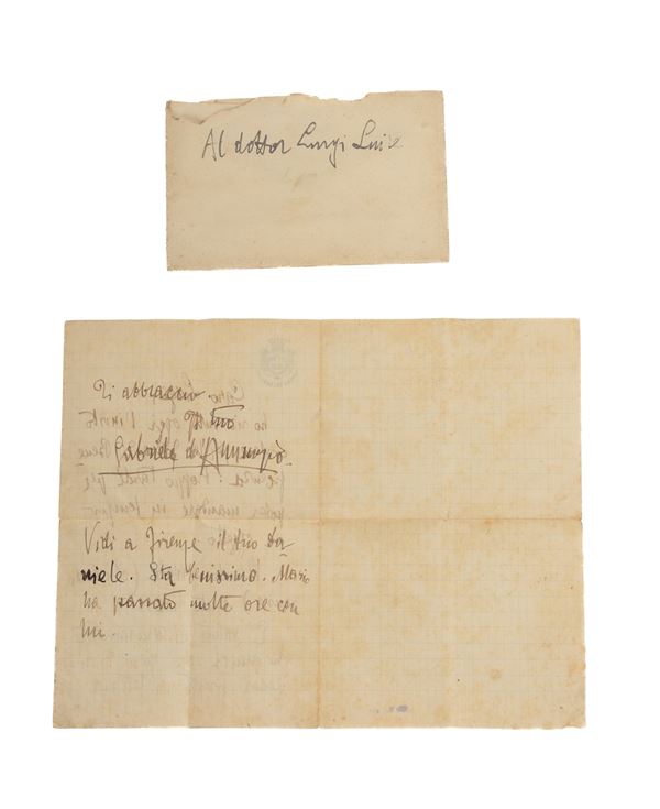 Lotto di n. 6 lettere indirizzate da Gabriele d'Annunzio al Dottor Luigi Luise di Francavilla al Mare ed una cartolina di Fiume datata e firmata.