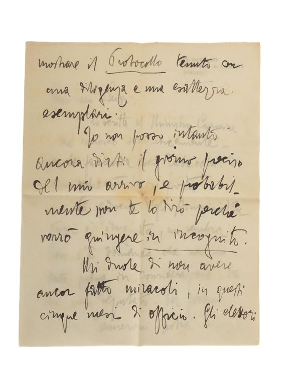 Condizioni: buone, fatto salvo un piccolo strappo nella parte alta di 4 cm che corre lungo la piega della lettera.