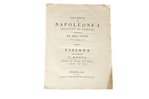 11) Monti, V. - Alla Maestà di Napoleone I°, Imperator deʹ francesi, coronato Re dellʹItalia - Milano, 1805.