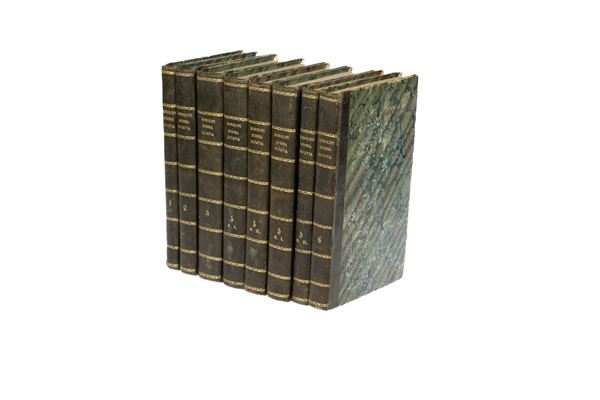 Otto volumi formato 8°, rilegati in mezza pelle coeva, titoli e fregi in oro ai dorsi, pp. 234, [14] - 337, [19] - 447, [71] - 468, [4] - 423 - 398, 18 tavole incise in rame ripiegate - 291 - 334, 3 tavole incise in rame ripiegate, esemplari in buone condizioni.