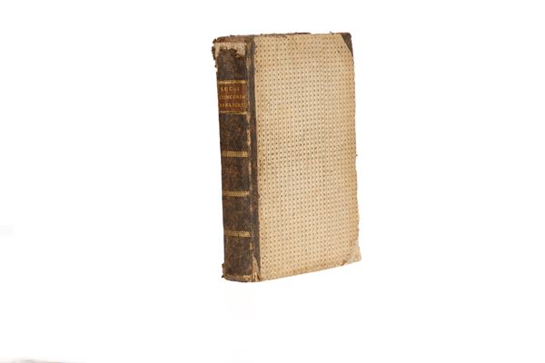 Volume in-folio, rilegato in mezza pelle coeva, titolo in oro al dorso, pp. frontespizio con grande incisione in rame, pp. [10], 744, esemplare in buone condizioni, legatura usurata e con mancanze al dorso.