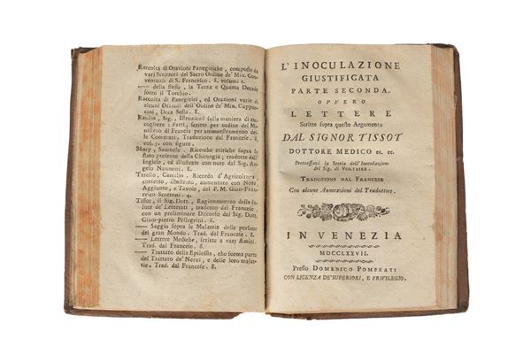 Due parti in un volume formato 16°, rilegato in piena pelle coeva, pp. [16], 158 - [4], 184, esemplare in buone condizioni.