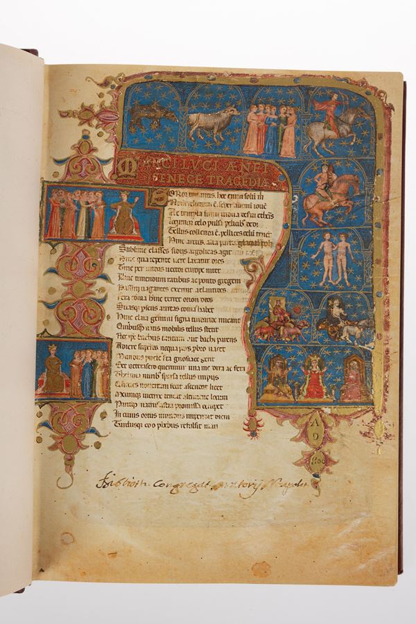 Riproduzione in facsimile del manoscritto, XIV secolo, che contiene ‘Il Teatro’ (le Tragedie) di Seneca.