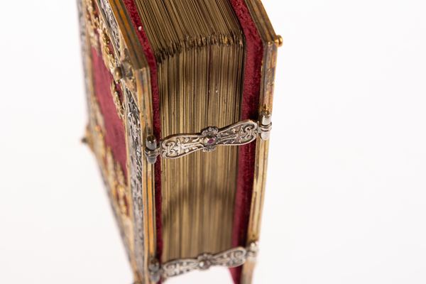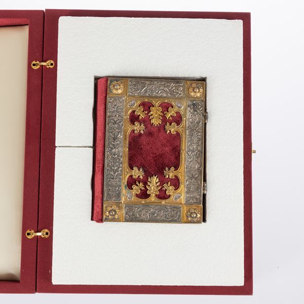 Legatura in argento cesellato con parti dorate, su fondo in velluto purpureo. Sui fermagli argentei, due piccoli rubini. Il volume di commento (17×24 cm.; 240 pagine) è curato da Andrea De Marchi.