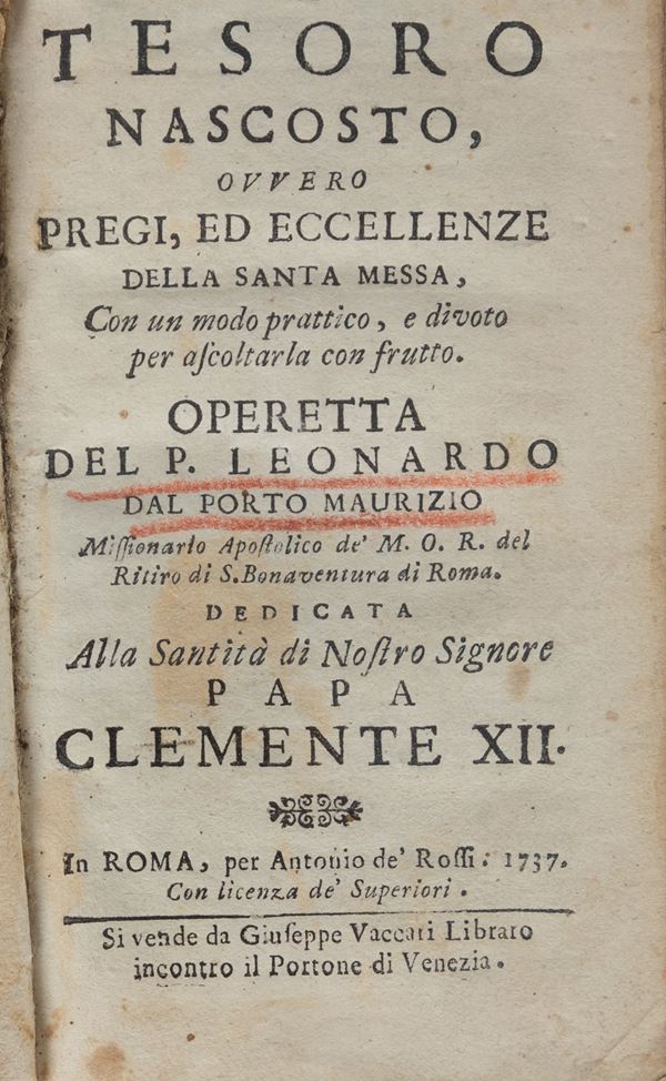 5)	Il Tesoro nascosto ovvero pregi ed eccellenze della santa messa. - Roma, 1737