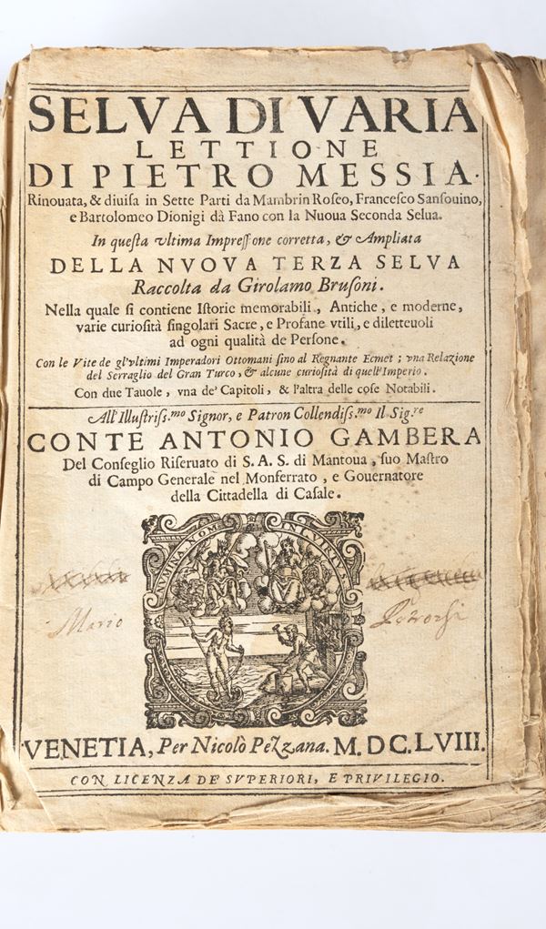 Mexia Pedro, Selva di varia lettione di Pietro Messia. Rinouata, & diuisa in sette parti da Mambrin Roseo, Francesco Sansouino, e Bartolomeo Dionigi da Fano...