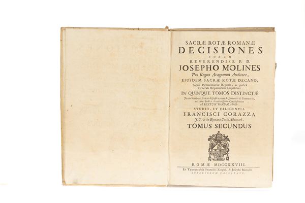 Titolo: Sacrae Rotae Romanae decisiones - Tomo 2°/ Index vol. I°/II° - Roma, 1728.