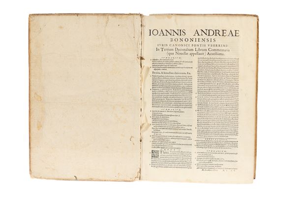 Giovanni dʹAndrea - In tertium / quartum Decretalium librum commentaria - Venezia, 1581 (primo front. mancante).