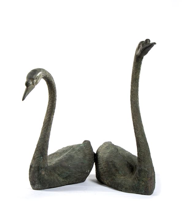 Coppia di cigni in bronzo