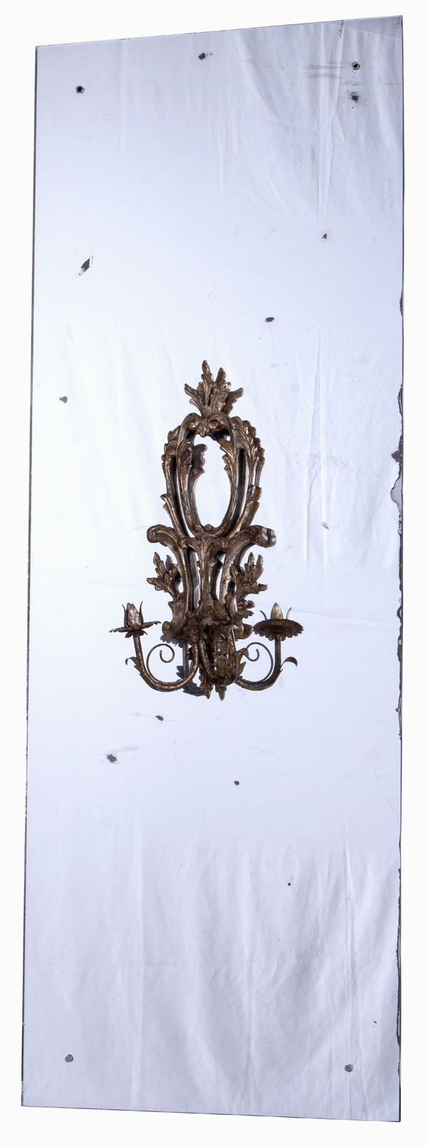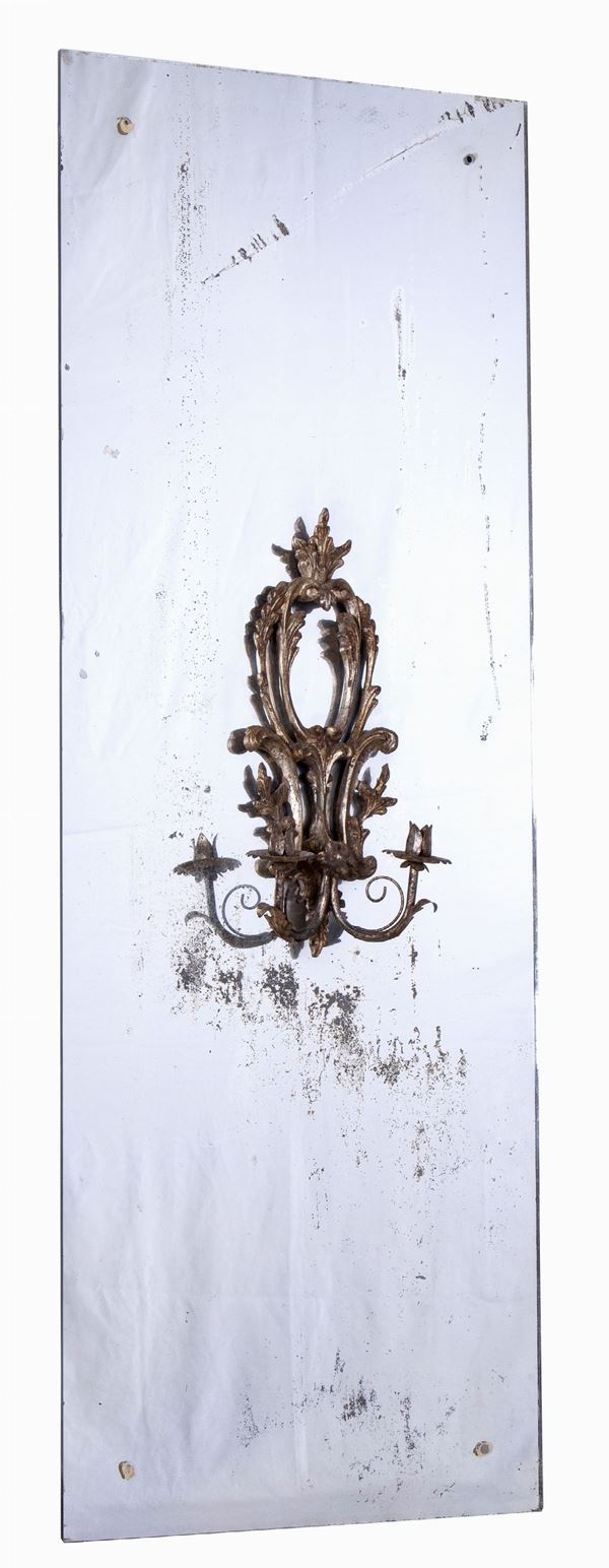 cm 155x57 Specchi con candelabri a due braccia applicati su antichi vetri al mercurio.