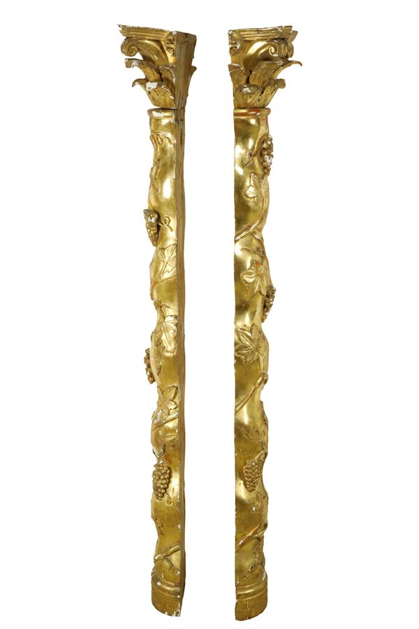 Coppia di mezze colonne in legno dorato