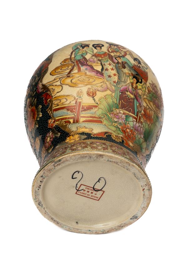 Coppia di vasi Satsuma riccamente decorati con scene di genere. Cina, seconda metà del XX secolo