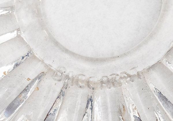 5 piattini mancanti e 2 sbeccati, alcuni con marchio "Baccarat".