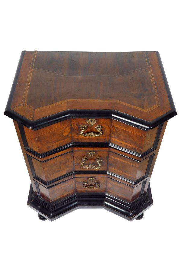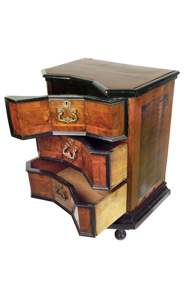 Lastronata in radica di noce , filettatura in acero e cornici ebanizzate