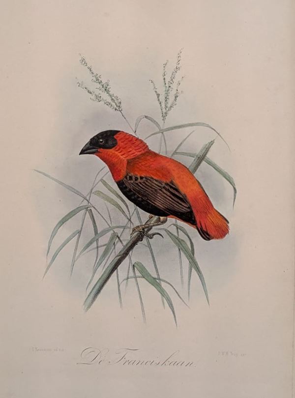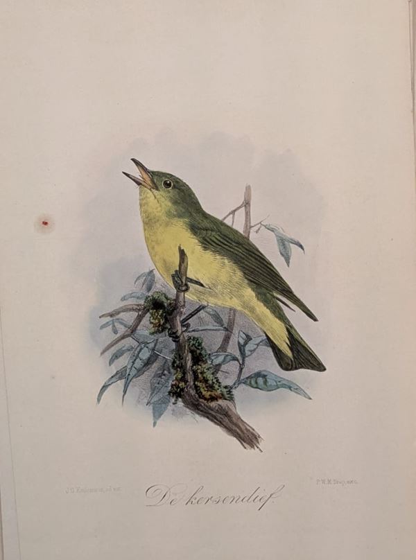 Raccoglitore con 56 incisioni a colori rappresentanti uccelli tratte da Onze Vogels in HDIS en TUIN, 1876 Leiden