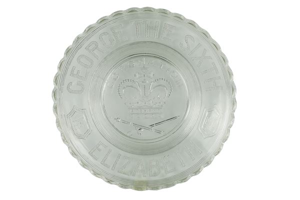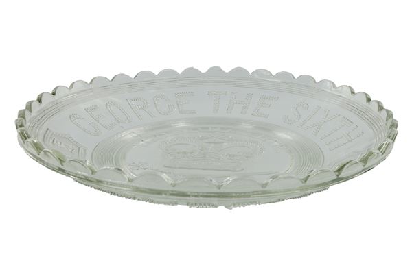 Set di 12 piatti commemorativi in vetro realizzati in occasione dell' incoronazione di Giorgio VI nel 1937
