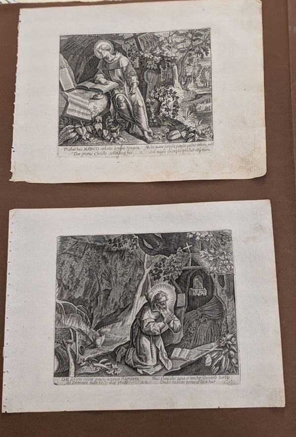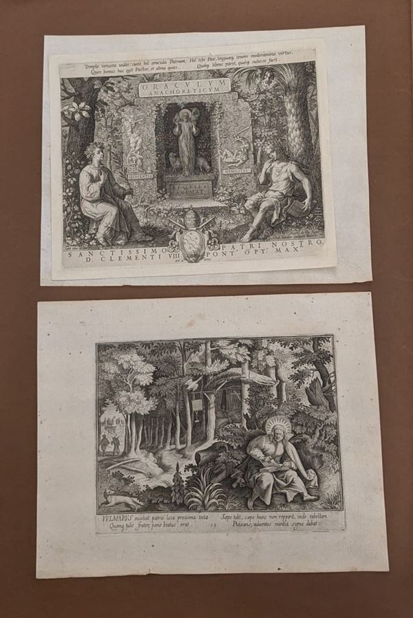 Lotto di 20 incisioni e un frontespizio del volume Oraculum Anachoreticum A.D. 1600
