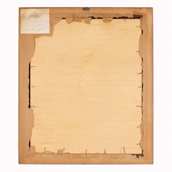 Al retro cartiglio dello "Studio d'Arte La Darsena" di Modena, che riporta oltre agli autori anche le condizioni uguali per tutte le sei acqueforti: "buona prova, fresca e perfettamente conservata, a grandi margini".