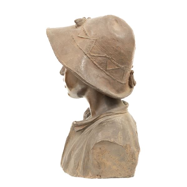 La scultura raffigura un giovane campagnolo (il titolo è dell'autore) con un grande cappello floscio, una giacca aperta che metto in evidenza sul petto nudo "lu bbreve" (in vernacolo abruzzese), un particolare amuleto costituito da sacchetto confezionati con ritagli di stoffa contenente elementi di carattere religioso, sia pagano che cristiano, da portare attorno al collo con un laccio egualmente di toffa.