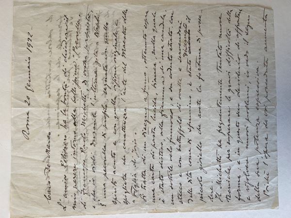 La lettera di Siviero – che accompagna l’opera in asta, e che trasse spunto da una sollecitazione del giornalista e critico d’arte Guido Polisiero – è datata 20 gennaio 1922, fornendoci così un sicuro termine ante quem per la datazione dell’opera.