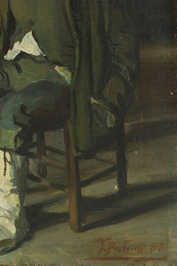 La firma rende certa l’attribuzione a Teofilo Patini, grande protagonista della svolta verista della pittura abruzzese di fine Ottocento.