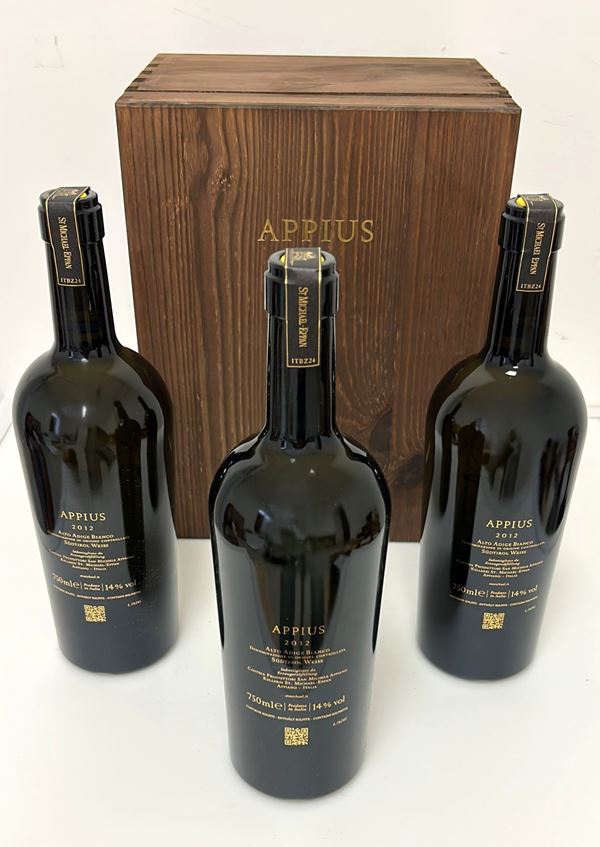 Lotto composto da 3 bottiglie da 75 cl di vino APPIUS anno 2012 .