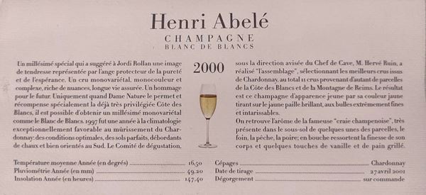 Lotto composto da 6 bottiglie da 75 cl. di H.ABELE B.BLANC anno 2000.