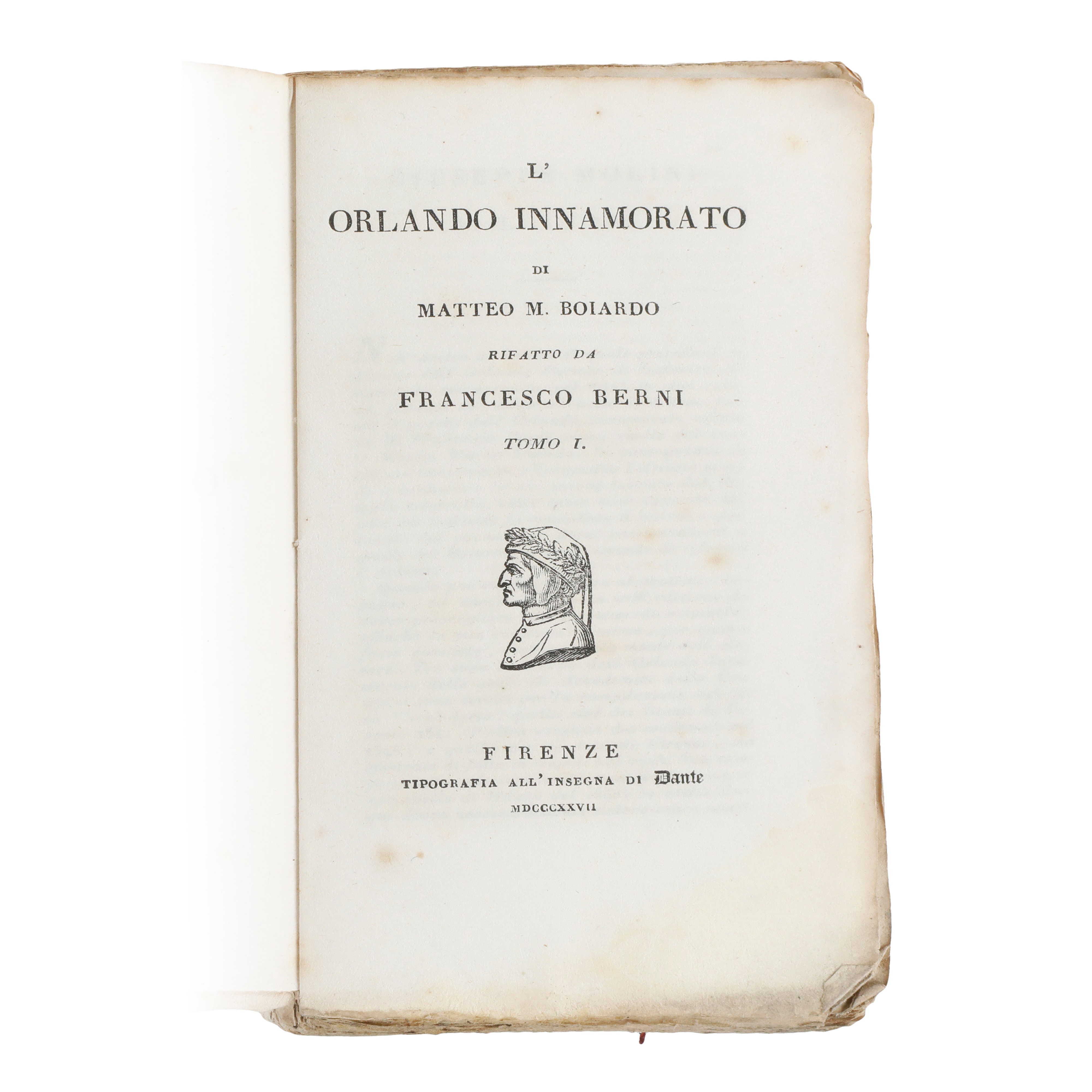 Boiardo, Matteo Maria – Berni, Francesco. L’Orlando Innamorato di Matteo M. Boiardo rifatto da Francesco Berni. Firenze, Tipografia all’Insegna di Dante, 1827.