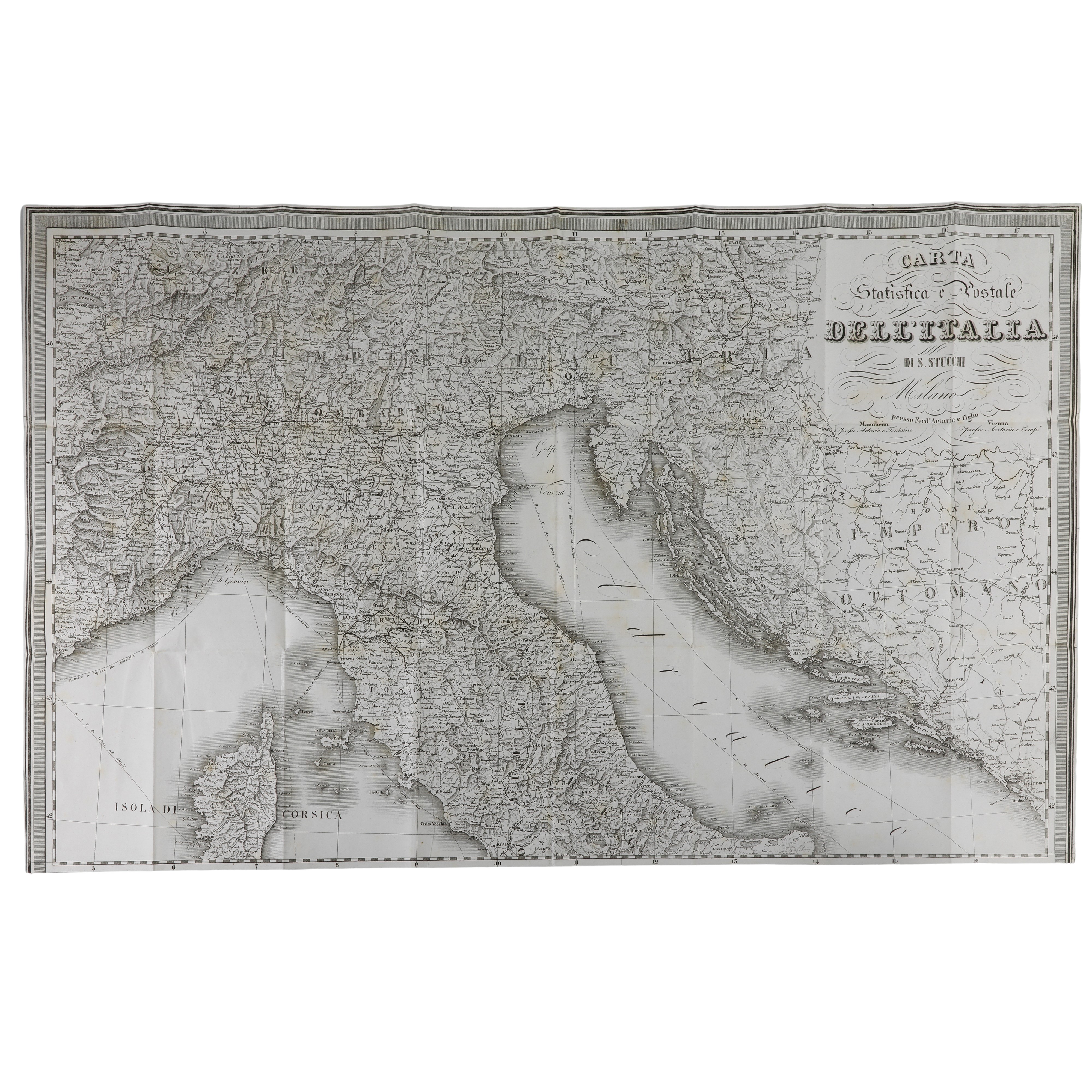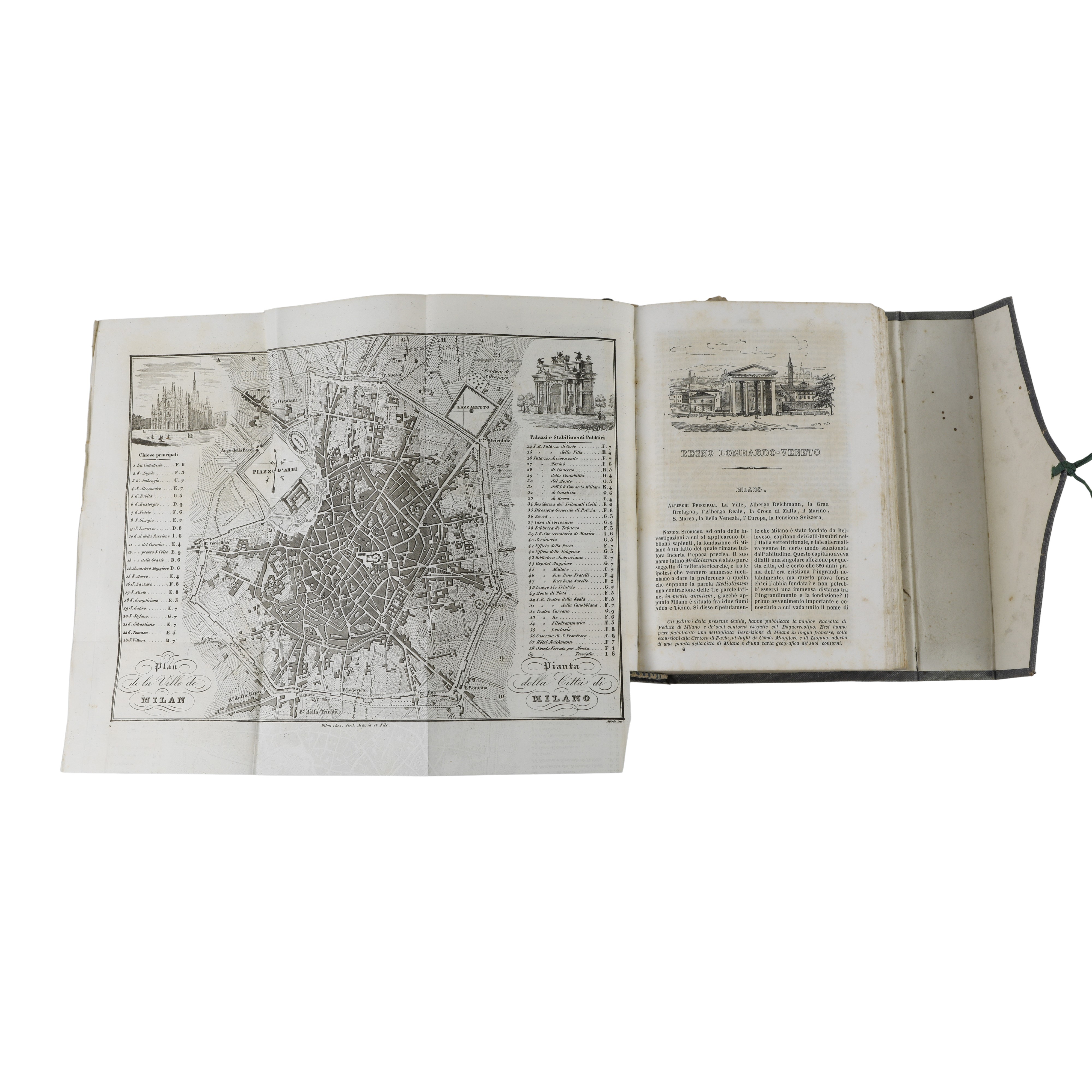 Esemplare di grande interesse storico e cartografico intitolato "Nuovissima Guida del Viaggiatore in Italia", pubblicato a Milano nel 1852 dalla prestigiosa casa editrice Ferdinando Artaria e Figlio.