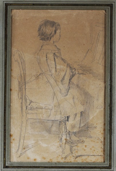Un importante disegno di Edgar Degas, che testimonia la sua seconda presenza in Italia, dove oltre a visitare i parenti, veniva per arricchirsi attraverso lo studio dei grandi maestri della pittura rinascimentale. Proprio nel corso di una delle sue visite presso la famiglia della sorella del padre, sposatasi con il barone Bellelli, imprime sul foglio l’immagine di una delle due cugine, Giulia, seduta dinanzi al pianoforte come si intuisce dalla dicitura a tergo della matita “ma cousine Julie Bellelli / E. Degas / Florence 1857-1858 / sentiamo questa sonatina”. Il disegno è di indubbio interesse oltre che per l’importante firma del suo esecutore, anche perché è un documento attestante la seconda presenza di Degas in Italia, il “23 avril 1860 / Florence” come scritto dall’artista in basso al disegno per sospendere la propria memoria, e per aver fermato un momento intimo della vita affettiva di questo straordinario artista «Ho due cuginette a pranzo. La maggiore è veramente un fiore di bellezza; la minore ha il carattere di un diavoletto e la bontà di un angelo. Le dipingo con i loro vestiti neri e i loro grembiulini bianchi che le rendono affascinanti. Ho varie idee per lo sfondo. Vorrei ottenere una certa grazia naturale assieme a una nobiltà che non riesco bene a definire». Peraltro, si segnala che la scritta sopra riportata, non compare nella scheda del catalogo del 1983, quando il foglio venne esposto nella significativa mostra dedicata proprio al legame intrattenuto dal pittore con gli zii della famiglia in Firenze realizzata a Copenaghen (Degas et la famille Bellelli, catalogo della mostra a cura di Hanne Finsen, Copenhagen 1983, pp. 79-80, n. 5). Si veda anche il contributo di J. Sutherland Boggs, La famiglia Bellelli, nell’articolo apparso in “The Art Bullettin”, (juin 1955, n. 2, pp. 127-136) e nella relativa traduzione (Edgar Degas et les Bellelli, pp. 14-19) pubblicata nel suddetto catalogo danese.