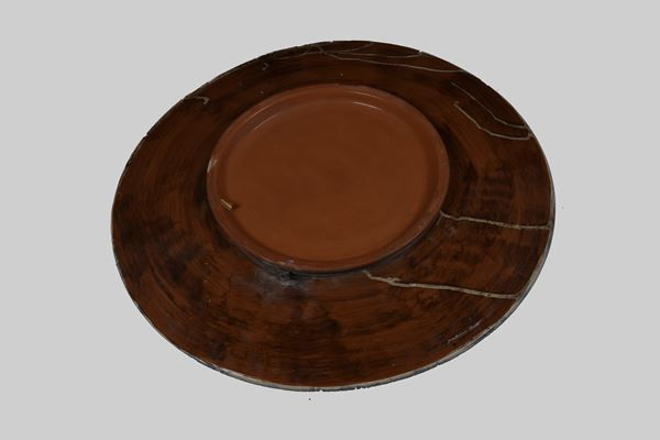 Ø 50 Piatto in ceramica dipinto a mano. Firma centrale in basso