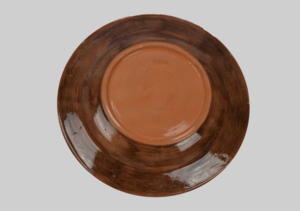 Ø 50 Piatto in ceramica dipinto a mano. Firma centrale in basso
