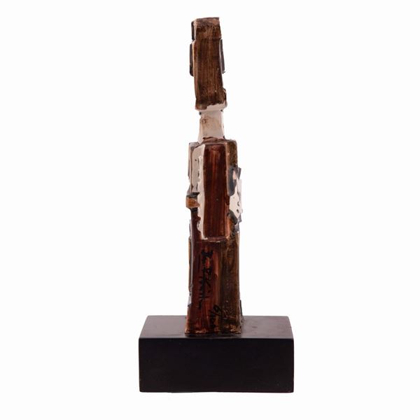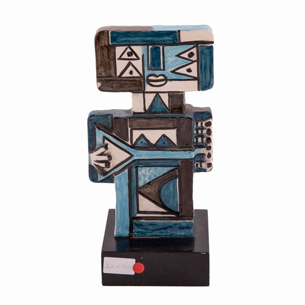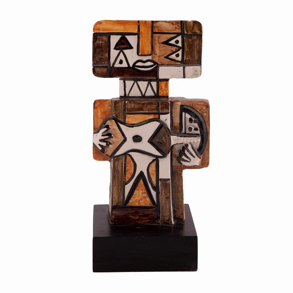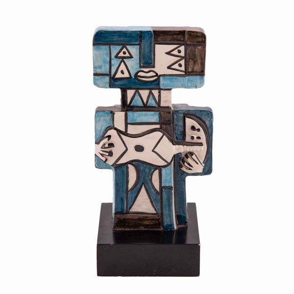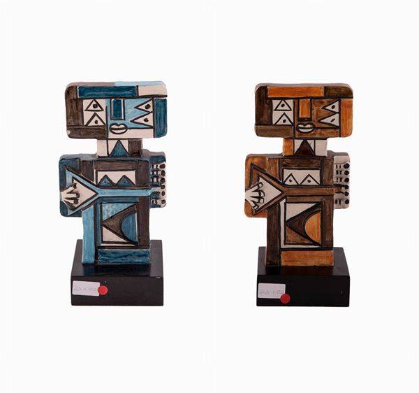 cm 24x16 e cm 17x16Coppia di sculture in ceramica rappresentante figure con ukulele