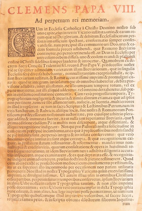 BREVIARUM ROMANUM EX DECRETO SACROSANCTI CONCILII TRIDENTINI RESTITUTUM S. PII V PONTIFICI MAXIMI JUSSU EDITUM CLEMENTIS VIII E URBANI VIII