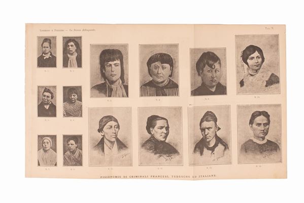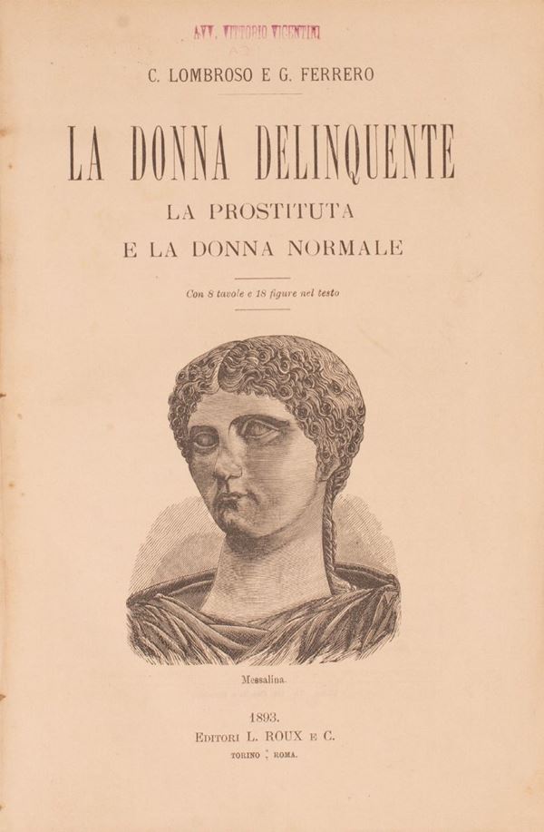 Cesare Lombroso (Verona 1835 - Torino 1909) fu il più autorevole studioso italiano di antropologia criminale. In quest'opera, ideale completamento dell'Uomo delinquente, l'A. analizza il fenomeno criminale femminile in base a età, clima, alimentazione, condizione economica, prostituzione, ecc. Rara prima edizione.