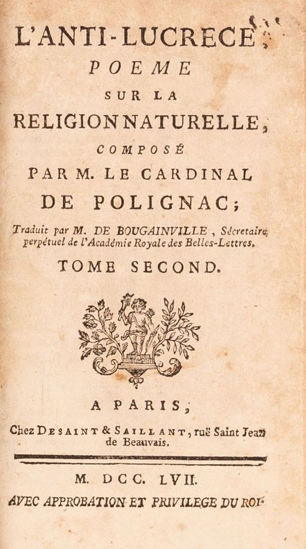L'Anti-Lucrece, Poème Sur la Religion Naturelle composè par M. Le Cardinal De Polignac, TOM. II
