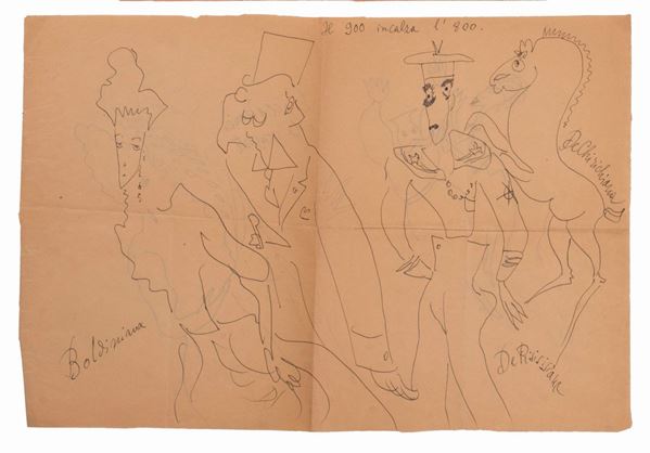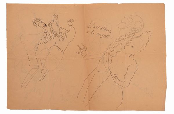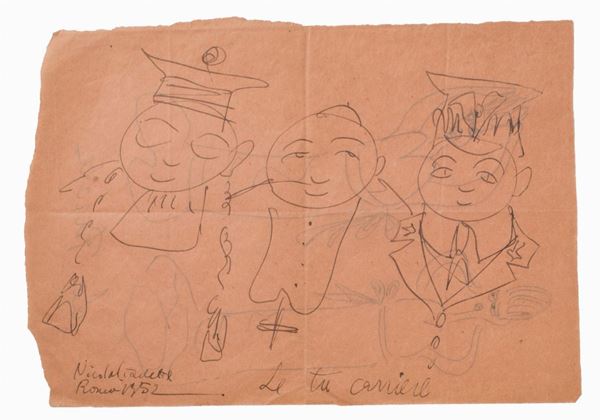 Lotto di 4 disegni umoristici di Nicola Ciarletta in due fogli al fronte e al retro.